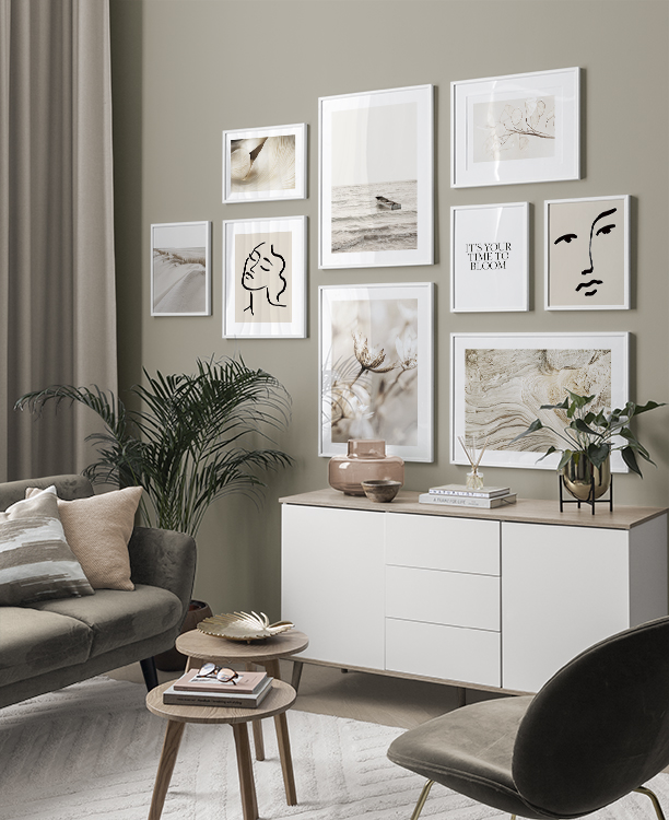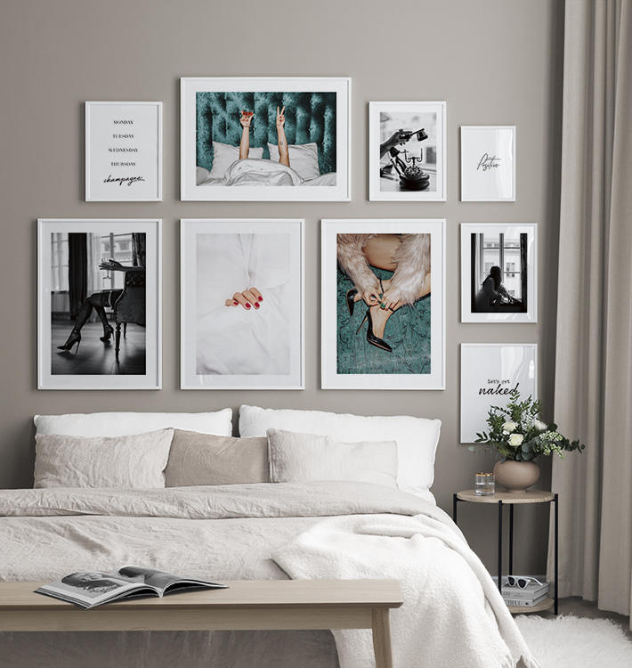 Je kunt voor iedere fotowand ook de motieven aanpassen en afmeting, lijst, passe-partout en andere posteraccessoires kiezen om een geheel unieke combinatie te creëren. De keuzes en mogelijkheden zijn oneindig - geef je eigen fantasie de vrije loop. Vind pure interieurinspiratie en klik de fotowand binnen die JOU representeert!
