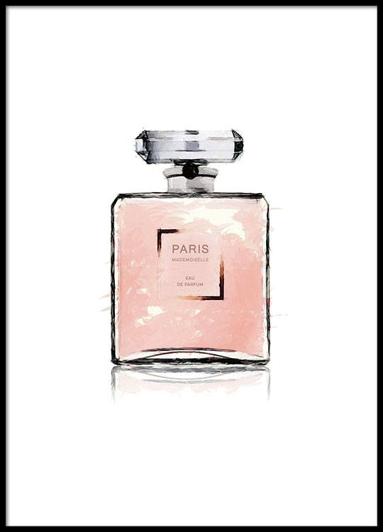 Vanaf € 4,87Aquarel van een roze Chanel-parfumfles met het woord Paris erop. Deze stijlvolle poster is net zo mooi hangend aan de muur als staand op een plank, en met modeposters kun je gemakkelijk een fotowand creëren die helemaal trendy is maar wel een stijlvolle look heeft!
