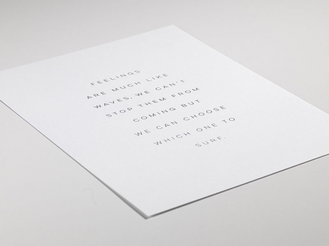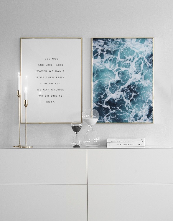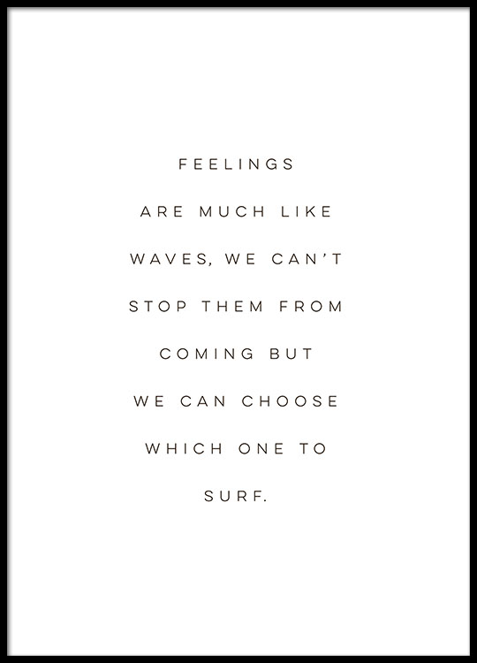 Handpicked Mooie poster met quote en boodschap. Feelings are much like waves, we can't stop them from coming but we can choose which one to surf.Een motiverende poster met mooi minimalistisch design dat goed past bij een stijlvol interieur. Perfect voor in een fotowand.