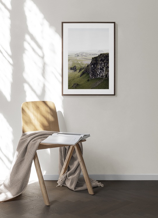 Handpicked Foto van de rotsachtige bergen en groen landschap op IJsland. Kalmeer je ziel met natuurposters aan je wanden en verken Studio Elements van Desenio Design Studio - een exclusieve fotocollectie van natuur en dieren, gefotografeerd op IJsland.