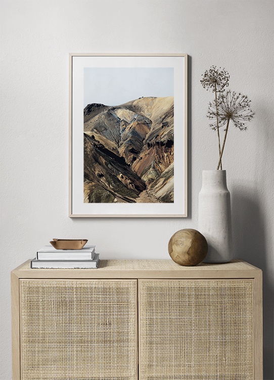 Handpicked Foto van kleurrijke bergen in de zuidelijke hooglanden van IJsland, Landmannalaugar. Verken Studio Elements, een fotocollectie van Desenio design studio die is gefotografeerd op locatie op IJsland.