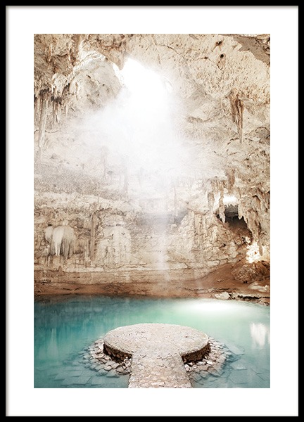 De poster is gedrukt met een witte rand die het ontwerp mooi inkadert.