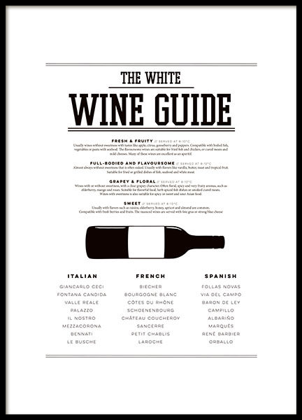 Posters, affischer och kökstavlor till köket - svartvit wine guide.