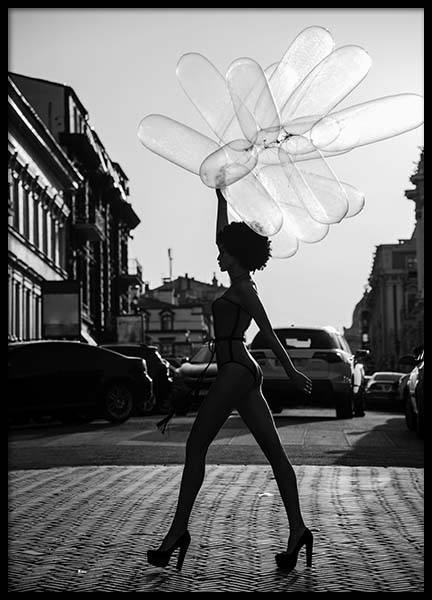 Woman Balloons Poster