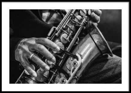 De poster is gedrukt met een witte rand die het ontwerp mooi inkadert.