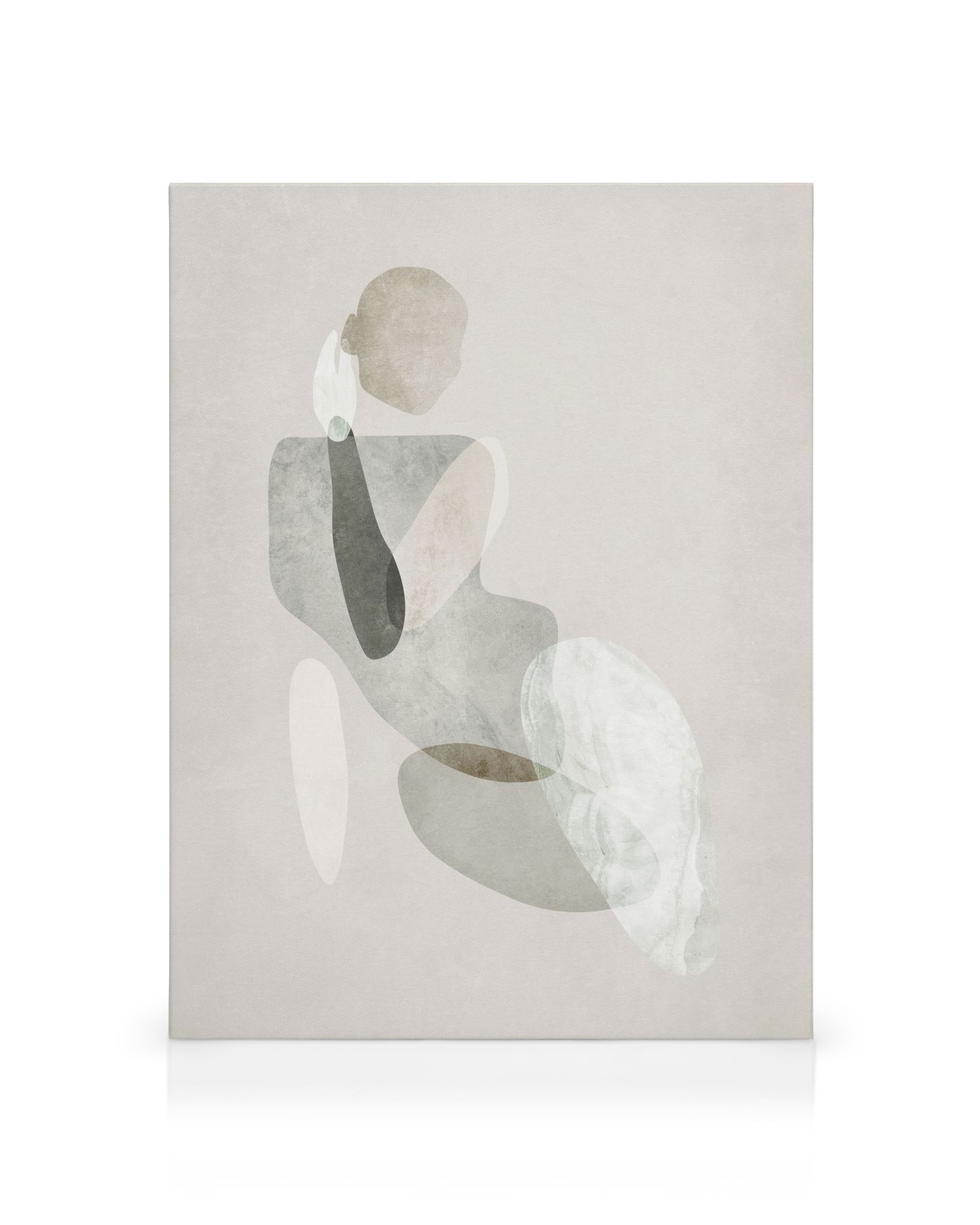 Vanaf € 19,96Abstracte canvas in zachte grijze, witte en beige vormen die de silhouet van een zittende figuur creëren, perfect om een moderne touch aan je huisdecoratie toe te voegen.