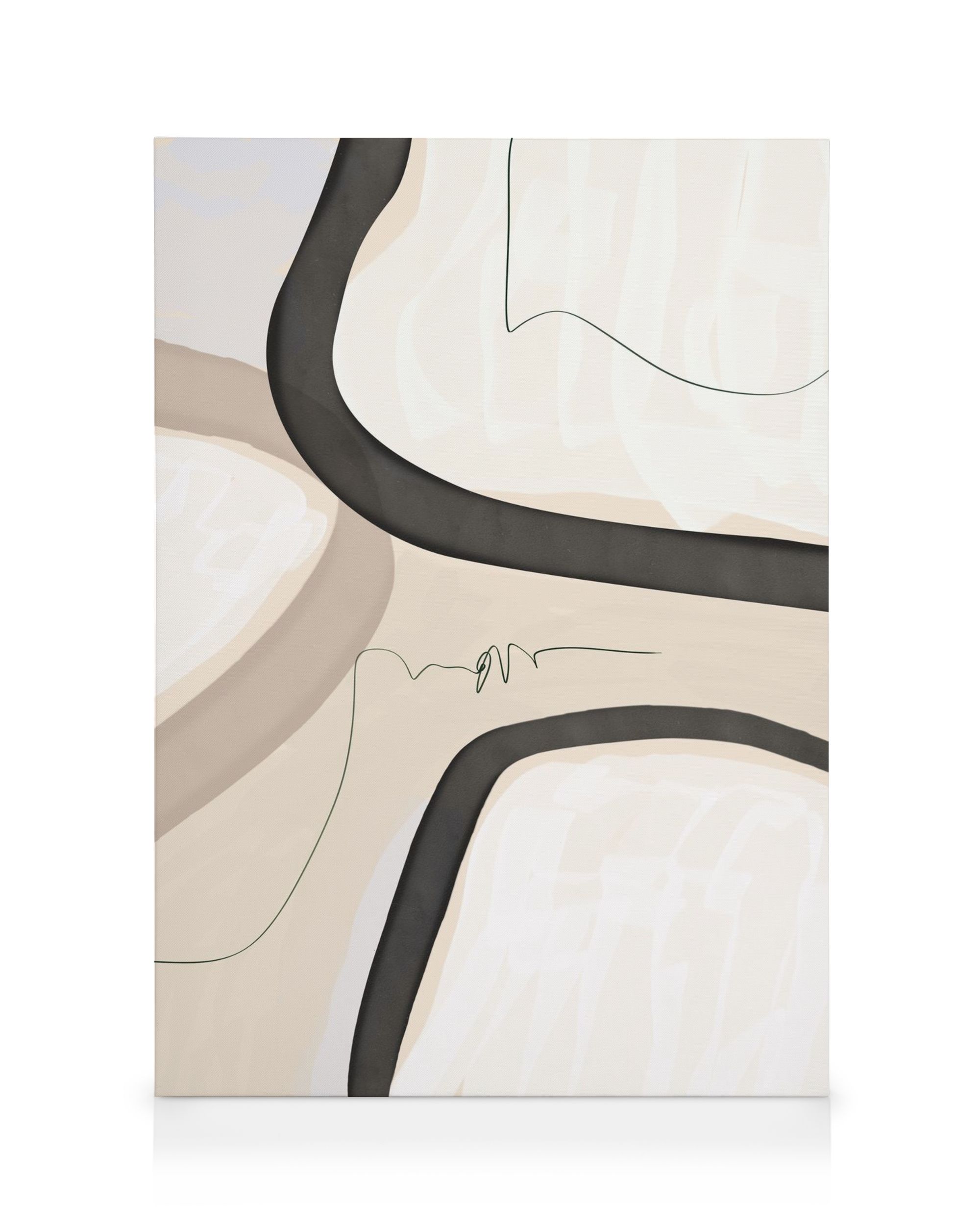 Abstract canvas duo met zwarte en beige lijnen en vormen op een neutrale achtergrond. Voeg een vleugje subtiliteit toe aan je interieur. Met abstracte kunst in neutrale kleuren sla je nooit de plank mis!