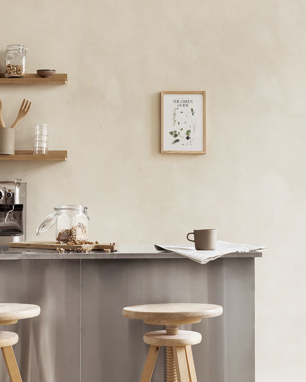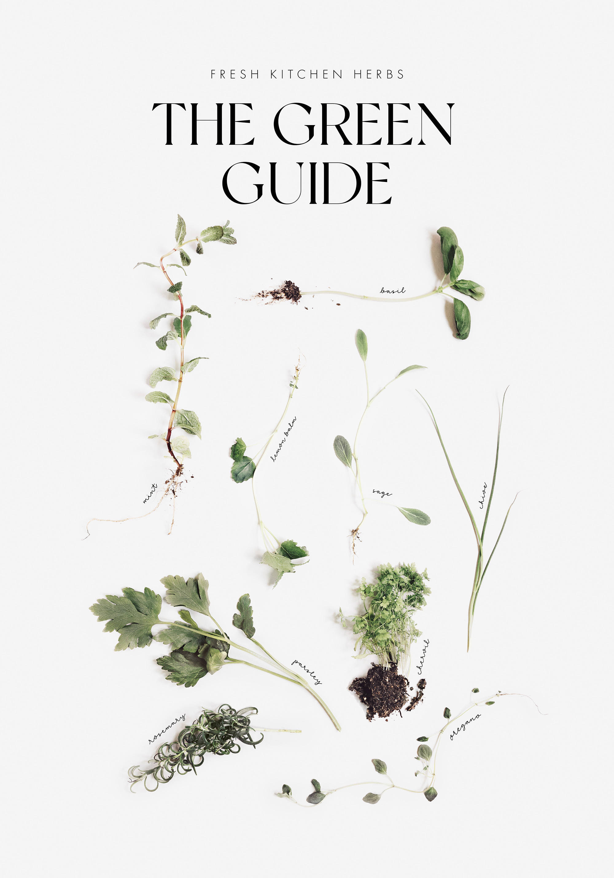 Poster van groene kruiden op een grijze achtergrond