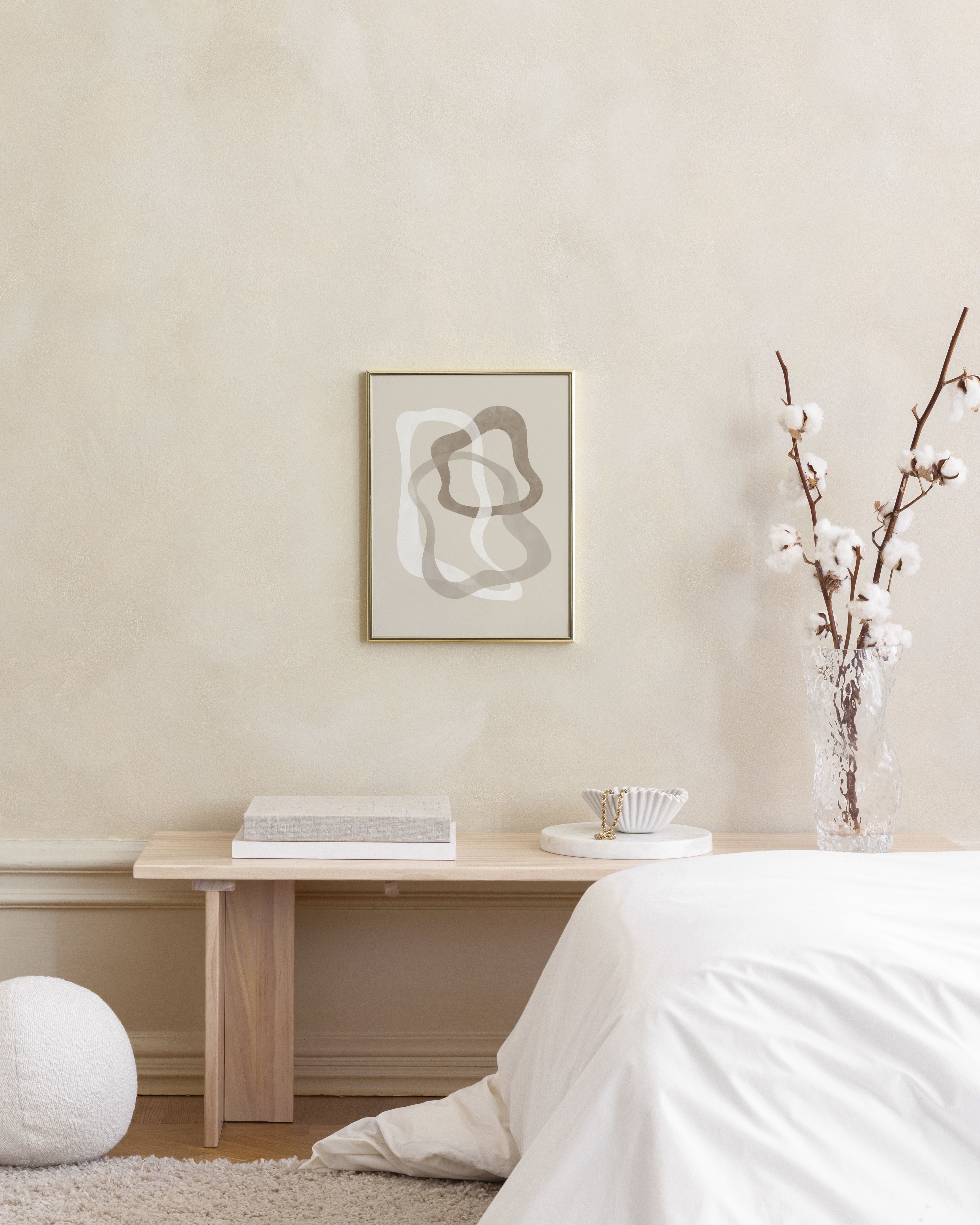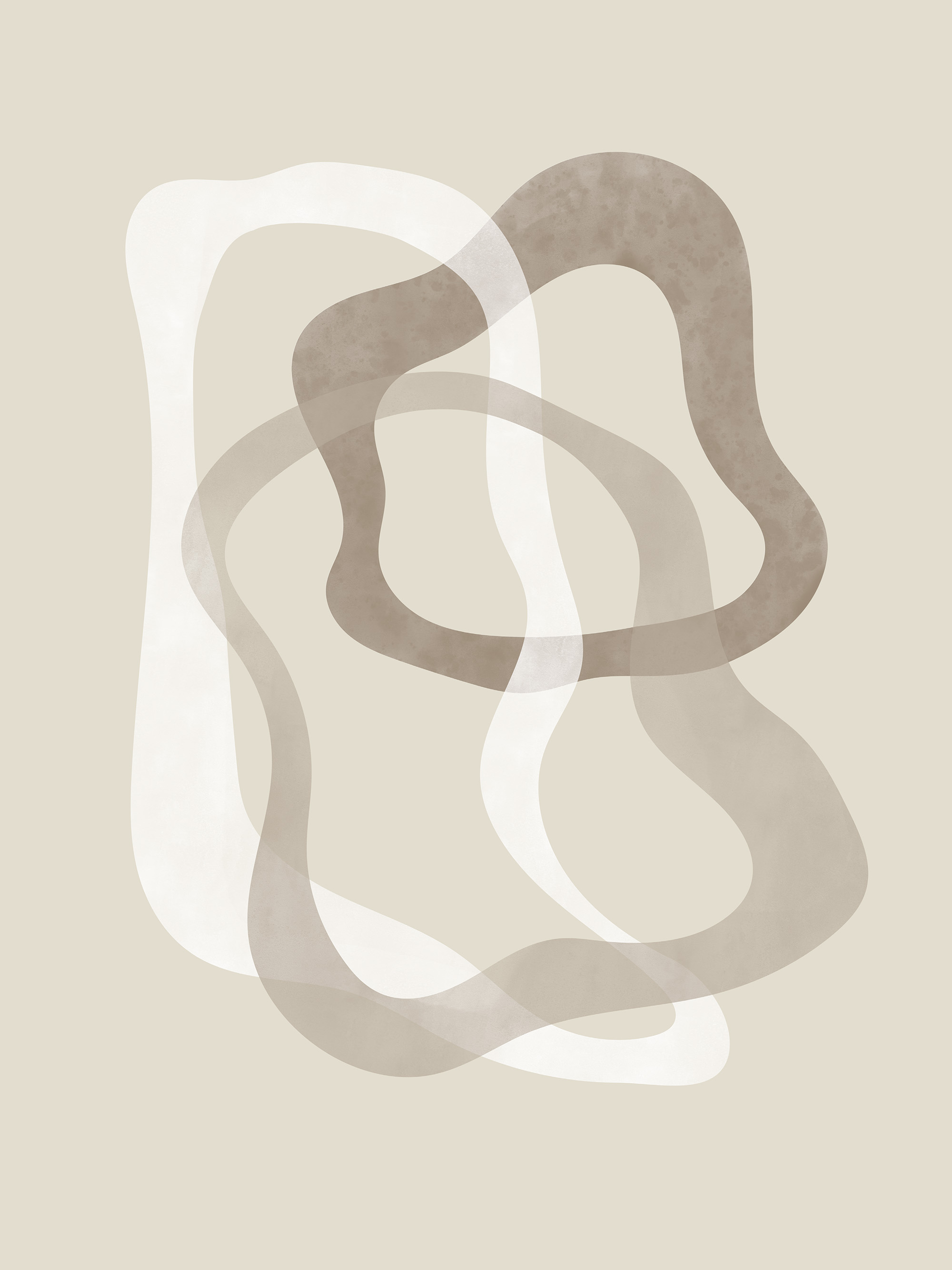 Vanaf € 24,95Abstracte poster met overlappende, golvende vormen in bruine, beige en witte tinten, op een beige achtergrond.