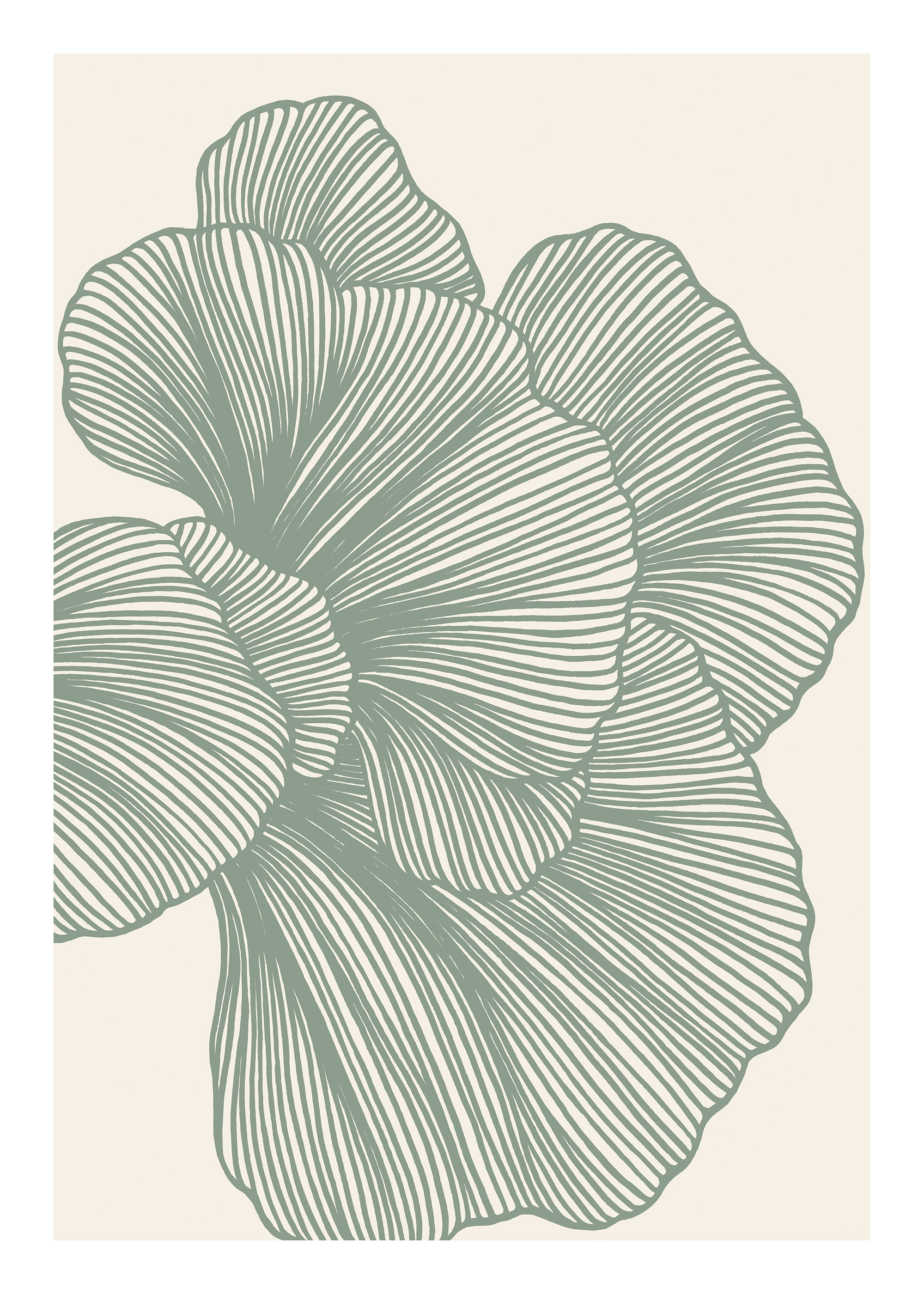 Twee abstracte posters met organische vormen in groene lijnen op een lichtbeige achtergrond. Eenvoudige en elegante wanddecoratie met vloeiende patronen.